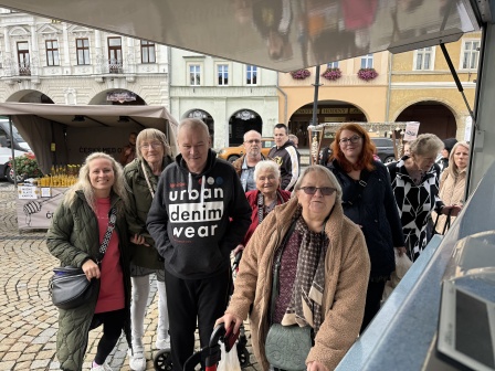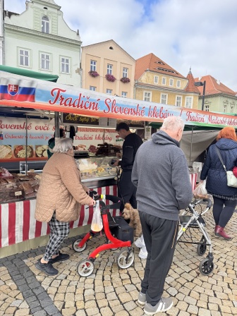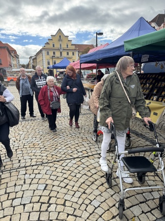 I v měsíci říjnu jsme dokonce dvakrát vyjeli s klienty na nákupy teplejšího oblečení. Klienti si doplnili skříně novým oblečením a obuví. Na závěr jsme se všichni občerstvili v cukrárně a prošli si farmářské trhy. Na trhách pokoupili regionální potraviny a spokojeni odjeli do tepla Domova.
