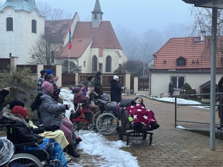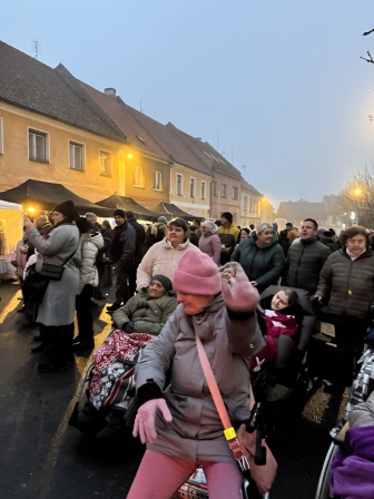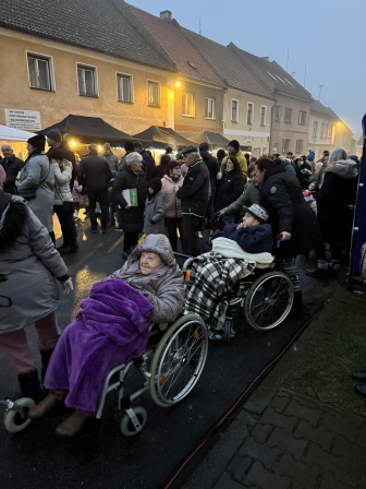 29. 11. 2025 jsme se sešli před budovou Domova, abychom si společně rozsvítili vánoční výzdobu a zazpívali koledy. Poté jsme se hromadně přesunuli na náměstí, kde probíhal bohatý kulturní program a stánkový prodej zakončený ohňostrojem.