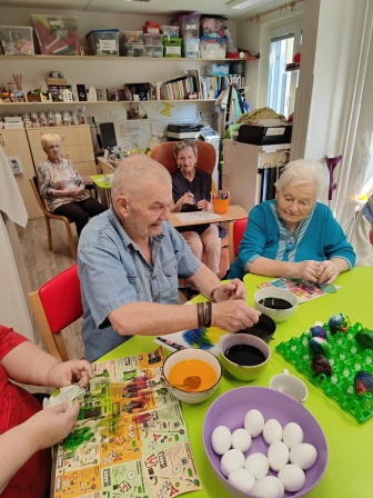 Během velikonočních příprav jsme se s klienty v rámci aktivizace připravovali na velikonoční svátky. Nejdříve jsme si obarvili vajíčka. Později upekli i pravého velikonočního beránka…. Prostě Velikonoce jak mají být.